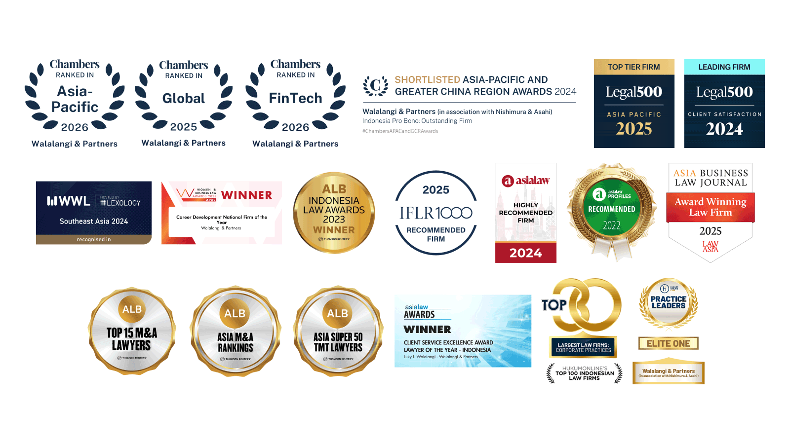 - “Walalangi & Partners possesses good knowledge and connections in all the relevant industries in Indonesia. The firm provides very timely responses and a well-rounded service.”