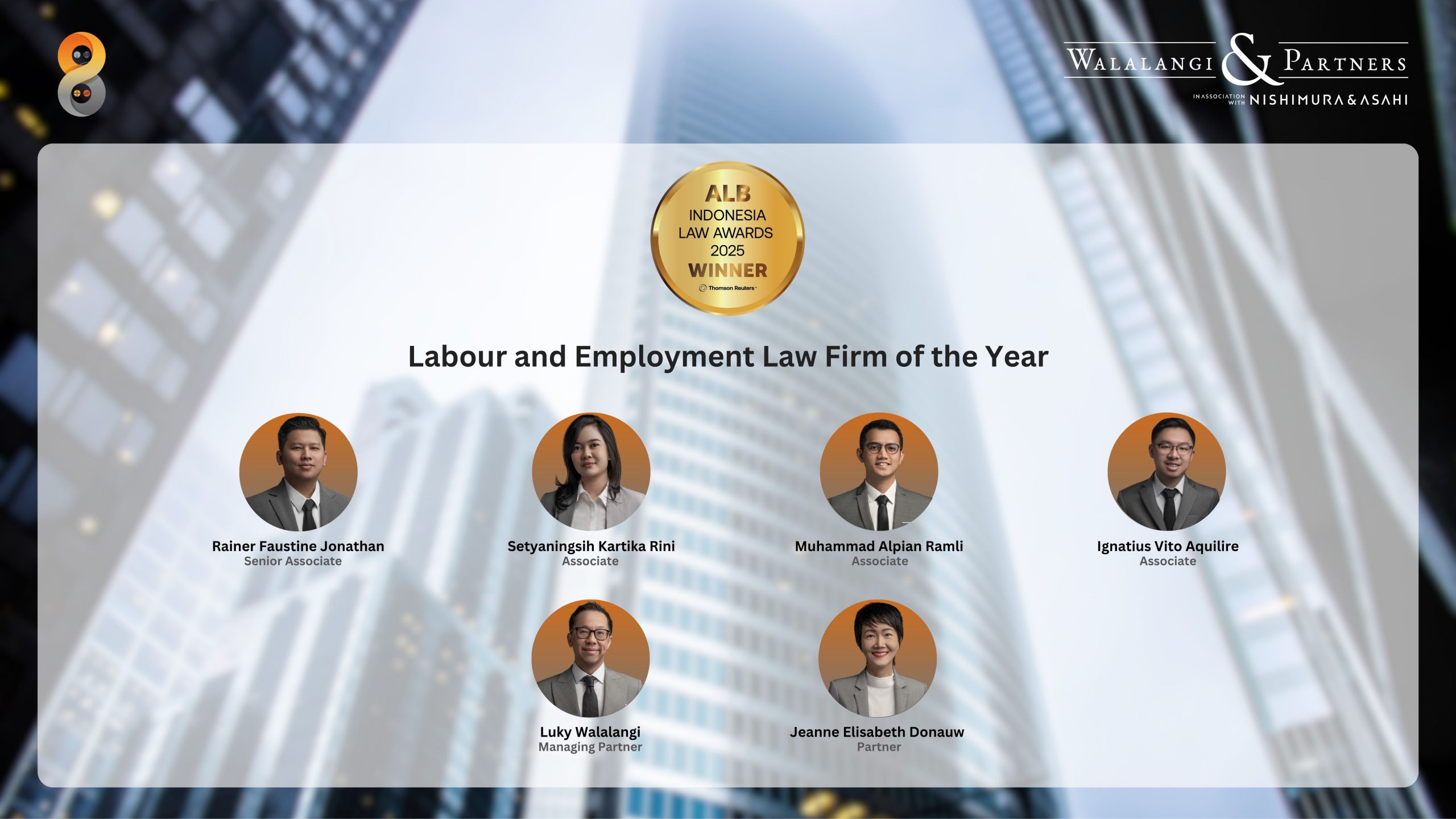 For the second consecutive year, Walalangi & Partners (in association with Nishimura & Asahi) has been honored as the Winner of the Labour and Employment Law Firm of the Year at the Asian Legal Business Indonesia Law Awards 2025.